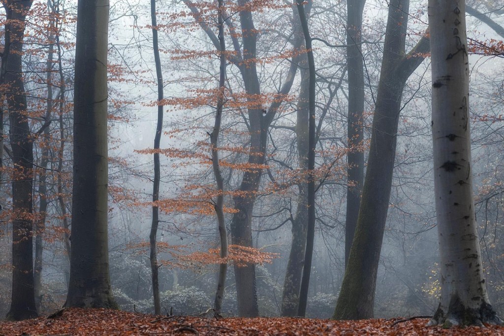 That magical moment when golden light touches the leaves but a chilly morning fog still lies in the distance…